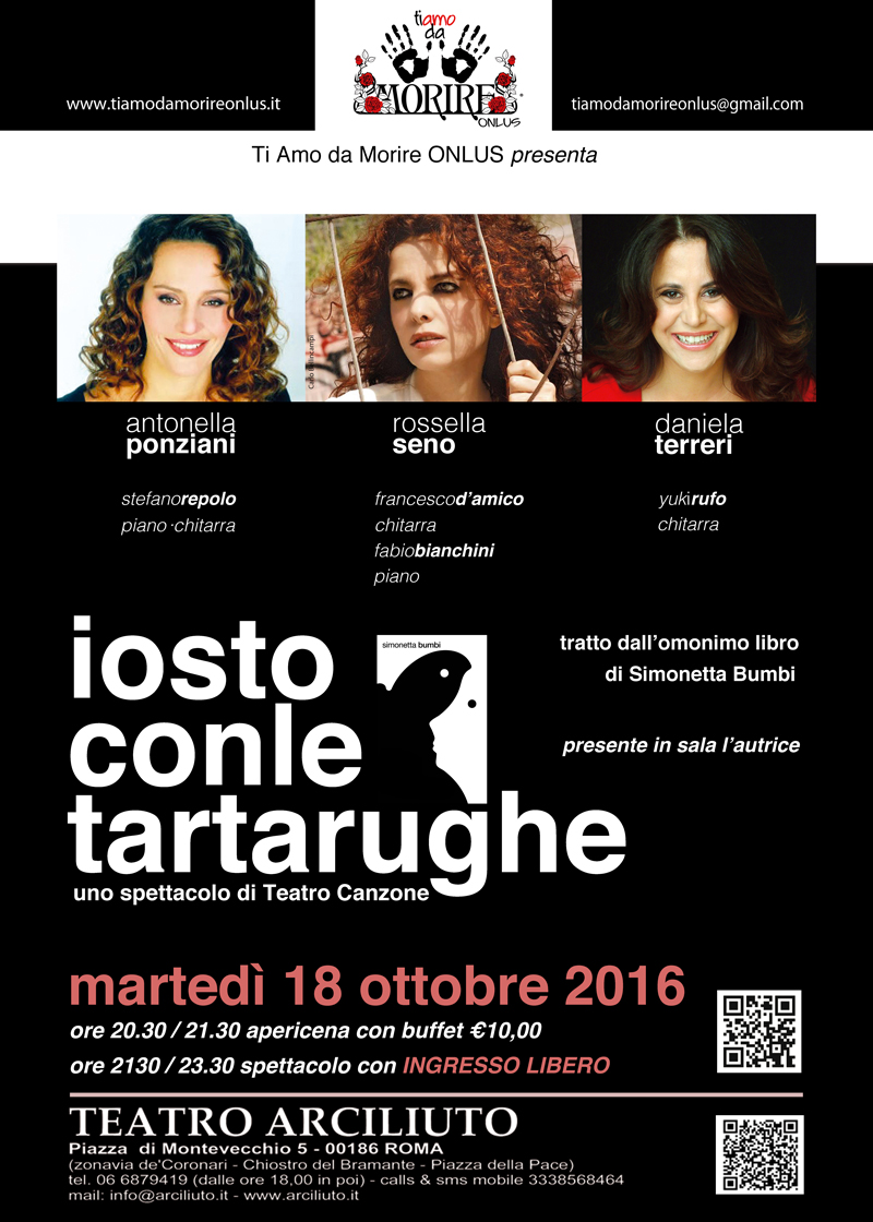 iostoconletartarughe, uno spettacolo di teatro canzone tratto fedelmente dall’omonimo libro (EmigliEditore srl) di Simonetta Bumbi, che sarà presente in sala, si inserisce nell’ambito degli eventi di sensibilizzazione contro la violenza di genere, organizzati dall’Associazione “Ti Amo da Morire ONLUS”.