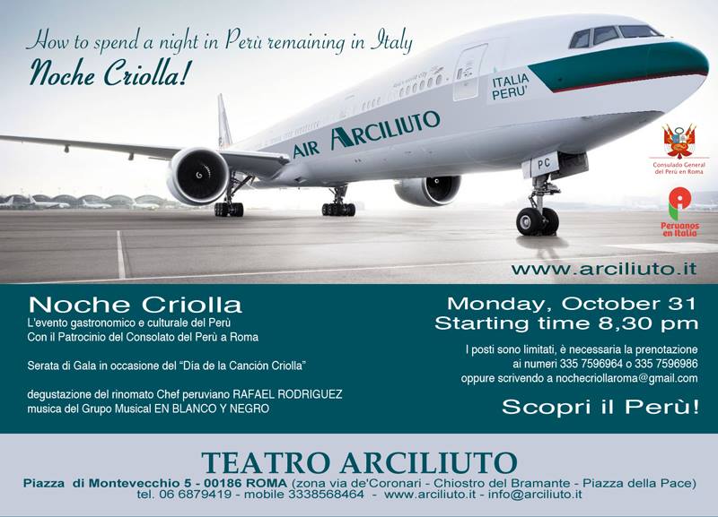 Il 31 ottobre, come oramai tradizione consolidata, al Teatro Arciliuto di Roma si festeggia la NOCHE CRIOLLA.