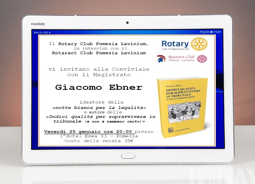 Ma Giacomo Ebner è anche l’ideatore della Notte Bianca della Legalità, tema molto caro a tutti gli invitati alla serata, Rotariani e non, che ha aperto le porte del Tribunale di Roma a circa 5000 ragazzi.