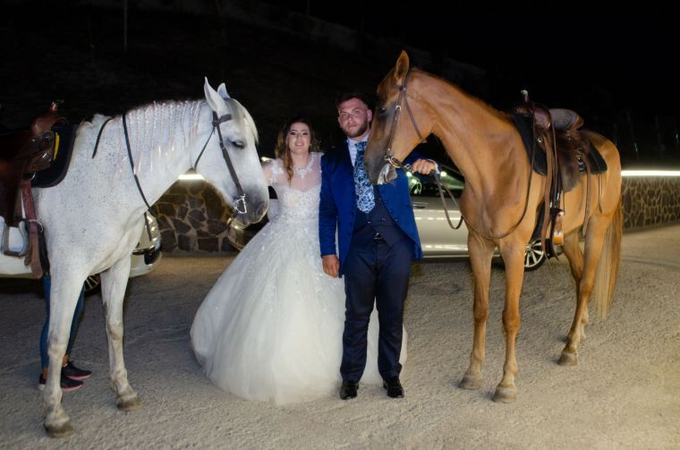 Sulle panche spiccavano delle borsette contenenti un ventaglio, delle bolle di sapone e dei petali bianchi che sono stati gettati con il riso, a cerimonia finita, all’uscita degli sposi dalla Chiesa con un tripudio di fuochi pirotecnici a forma di cuore. L’evento quindi si è spostato nella Tenuta Gabriele a San Giorgio Albanese in provincia di Cosenza creata da papà Giuseppe e che sta diventando un B&B di lusso. La tenuta è stata trasformata per l’occasione in un salotto principesco con tanto di cantanti neomelodici famosi e selezionati dallo speaker Giovanni Tarantino di Radio Eventi Calabria. A far da mattatore l’artista nonché cantante neomelodico Natalino Arturi. Tra i cantanti che si sono esibiti Daniela Montalbano, Cecè Barretta accompagnato dal suo manager Gianluca Scorza e Daniele De Martino che ha fatto il duetto con la sposa e con la Montalbano. Mentre gli inviati si deliziavano delle meraviglie del luogo e di sfiziosi stuzzichini i due novelli sposi dopo aver fatto visita ai nonni dello sposo, Teresa Aiello, mamma di Tiziana De Luca, Fausta Sidero e Giuseppe Florio, i genitori di Antonio Florio impossibilitati a presenziare alla cerimonia, sono andati a fare le foto di rito alla Torre sant’Angelo di Corgliano-Rossano con i testimoni. I due sposini hanno fatto ritorno dai loro ospiti, che li attendevano nella tenuta, in sella a due splendidi cavalli mentre, come per magia, le luci artificiali facevano capolino per lasciare il posto a quelle di un bellissimo tramonto per poi essere sostituite da quelle realizzate ad arte da Illuminal’art di Carella Nicola.