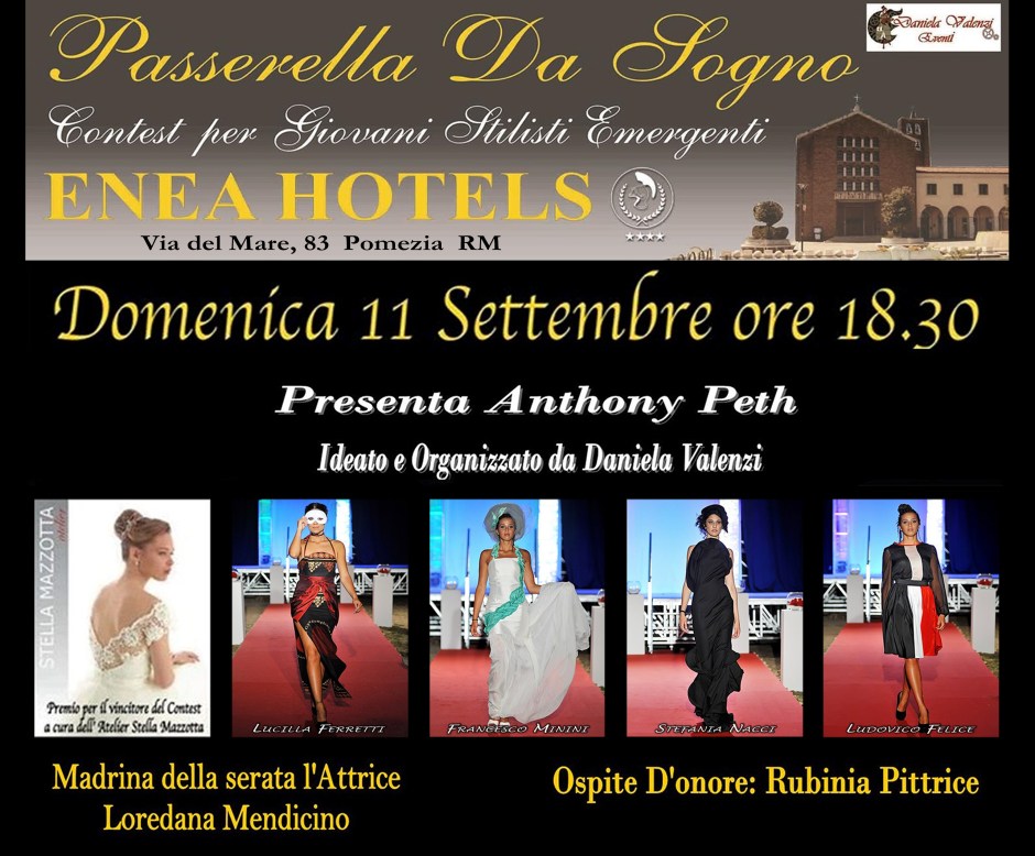 Nella sezione Talenti, capeggiati dalla Madrina Fioretta Mari premiata nell’occasione per la sua carriera, oltre ai nomi gia’ annunciati alla stampa nei giorni scorsi (Silvio Pacicca, Graziella Terrei, Roy Geraci, Iskra Menarini, Marco Vito ed Ivan Lazzara, Gianluca Sole, Marco D’Angelo, Marco Di Franco, Dradi Dimitar, Orazio Fazio, Vincenzo Merli, Alessia Caudatella, Pablo Gil Cagne’, Gennaro Diana, Gaia Barlocco, Pietro Gorgone e Lucia Simoneski, Caterina Abela) si sono aggiunti quelli dell’ attore Fabrizio Romagnoli e di un grande personaggio che ritirera’ il suo riconoscimento per l’annosa attivita’ lavorativa al top nel campo della Moda internazionale: lo stilista Carlo Alberto Terranova.
